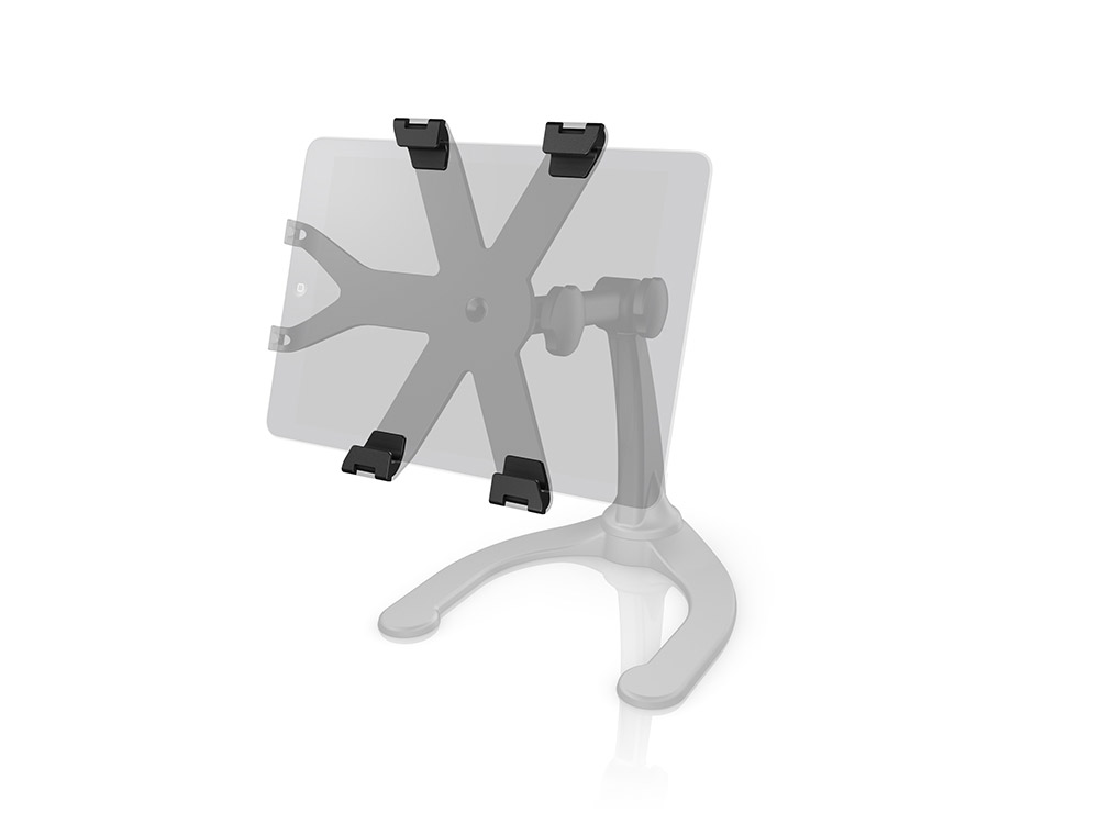 Designed for ideal weight balance, and constructed from rugged thermoplastic material, iKlip Stand provides a secure and flexible perch for the iPad. Two independent articulation points allow you to adjust both height and viewing angle, in either portrait or landscape mode, with a simple turn of the hand.